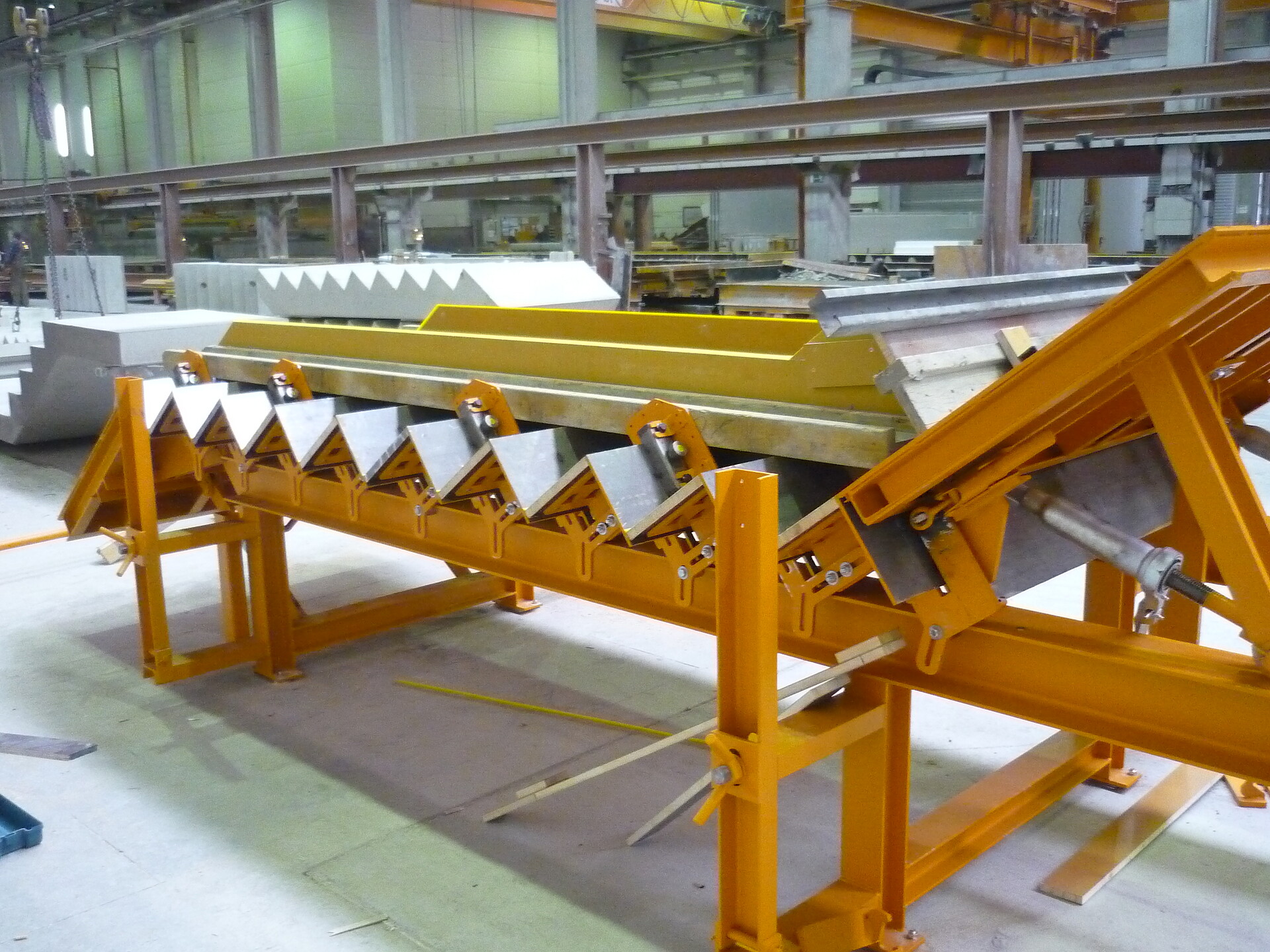 Tot ons assortiment behoren bekistingen die ontworpen zijn op basis van de productie van rechte prefabtrappen op de plaats van montage of als ‘negatieve vorm’ op de tredenuitvoering in zichtbeton. Het eenvoudige verstellen van de breedte van de trede, tredehoogte, helling en lengte van de trap zorgt voor korte uitrustingstijden.