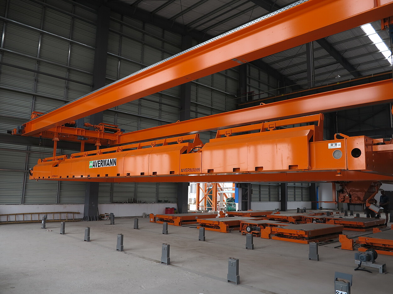 安夫曼有专门为两至三层空心板构件设计的翻转设备。它不仅可使用在模台流水线设备上也可使用在长线台模台生产线上。安夫曼可提供针对各种不同的空间及产能要求的多种运行方式的翻转设备。